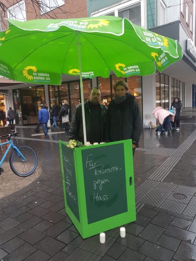 Parallel zur heutigen Mahnwache in Bottrop haben die Grünen ihren monatlichen Infostand den Opfern der Amokfahrt in der Silvesternacht gewidmet.